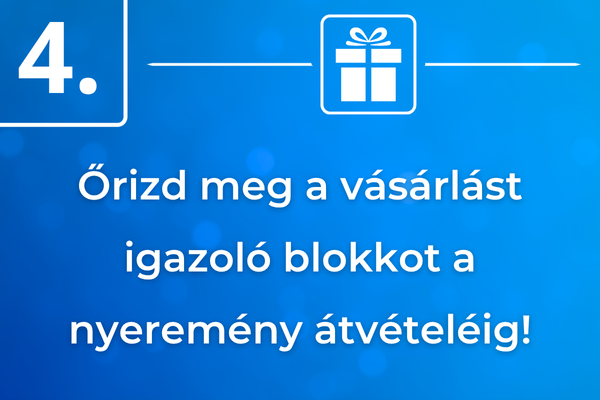 *A vásárlási összeg akár két blokk felhasználásával is elérhető. Kérjük, őrizd meg a vásárlást igazoló blokkot a nyeremény átvételének napjáig, mivel annak bemutatása a nyeremény átvételének feltétele. A nyeremény nem átruházható, és készpénzre nem váltható. A szervező fenntartja a jogot, hogy csak olyan játékosnak adja át a nyereményt, aki megfelel a Játékszabályzatban meghatározott valamennyi feltételnek. A nyereményjátékban kizárólag a promóció ideje alatt vásárolt termékek blokkja(i)val lehet részt venni.